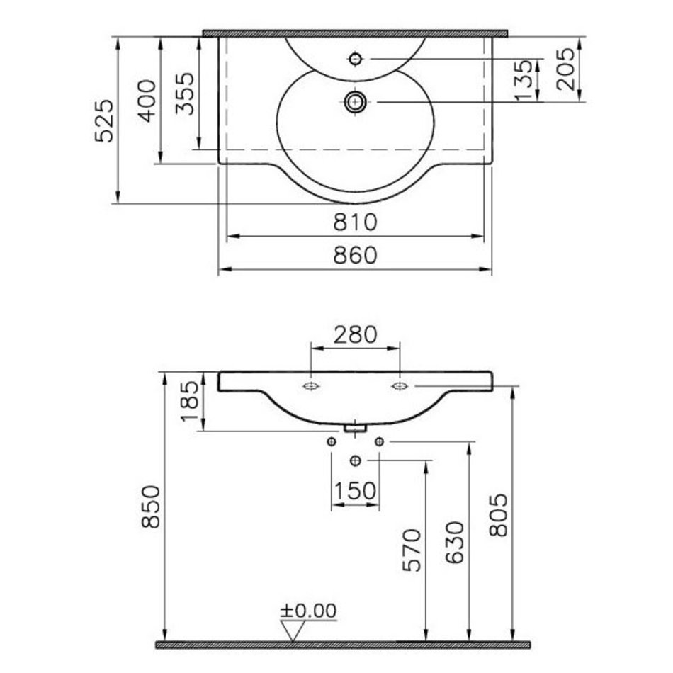 Раковина Vitra Arkitekt 4044B003-0001 86 см