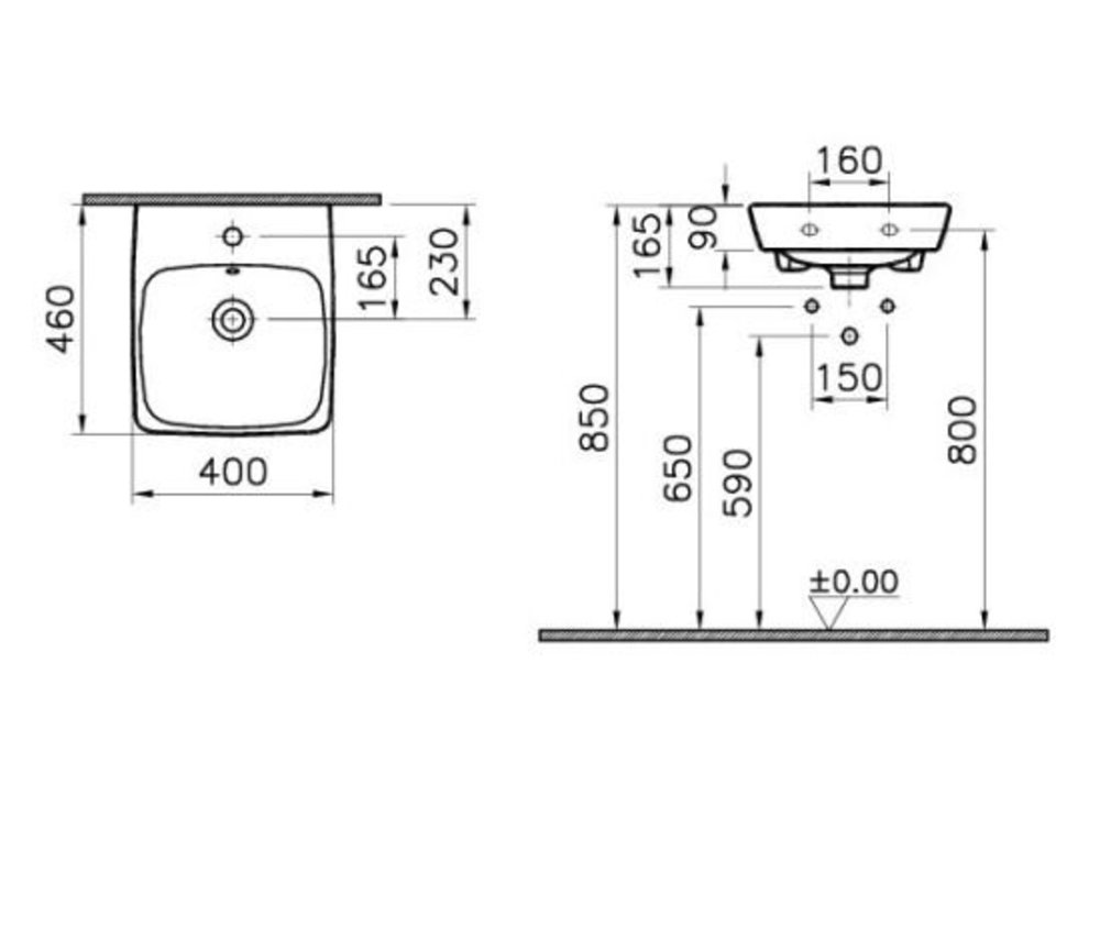Раковина Vitra Metropole 5660B003-0001 40 см, подвесная, с переливом