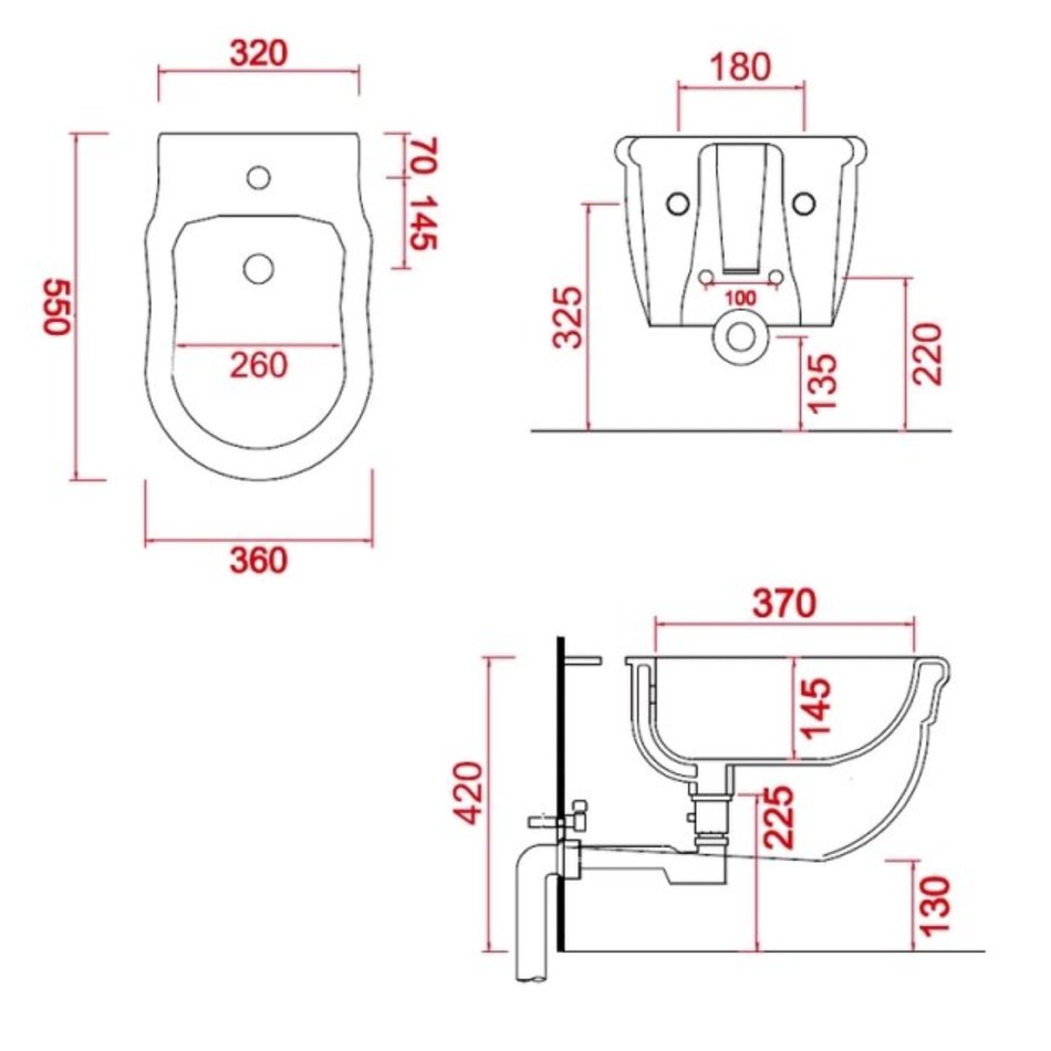 Биде ArtCeram Hermitage подвесное, 36 х 55 см, с 1 отверстием под смеситель, белый, HEB003 01 00