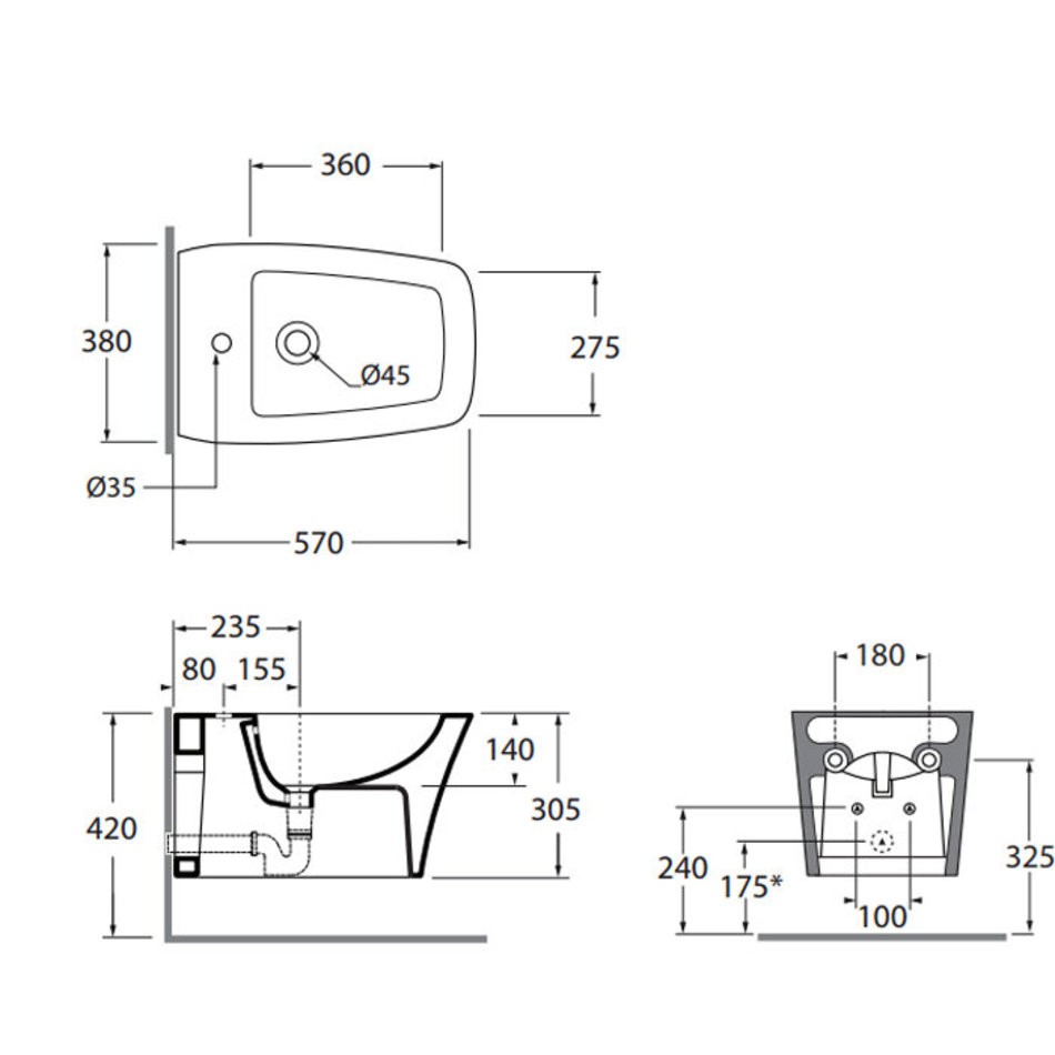 Биде Azzurra Hera подвесное, с крепежом, HEBKS000000MBI*1