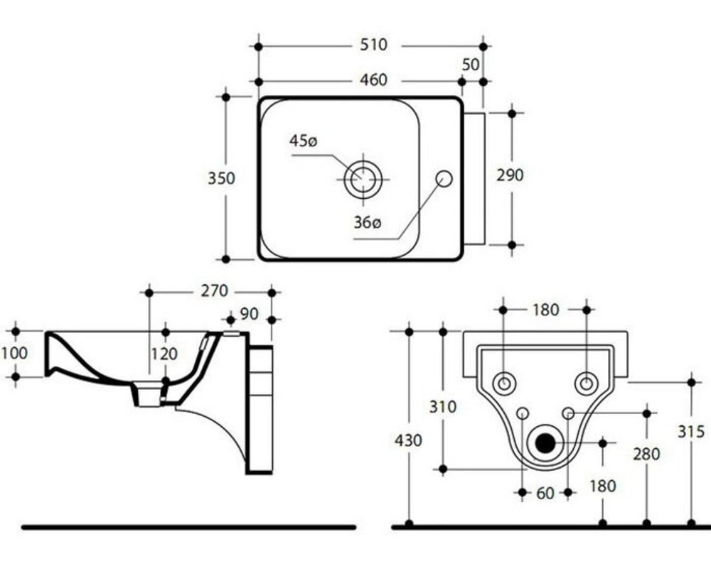 Биде Kerasan Cento 352401*1 35 x 51 см подвесное, прямоугольное, белый