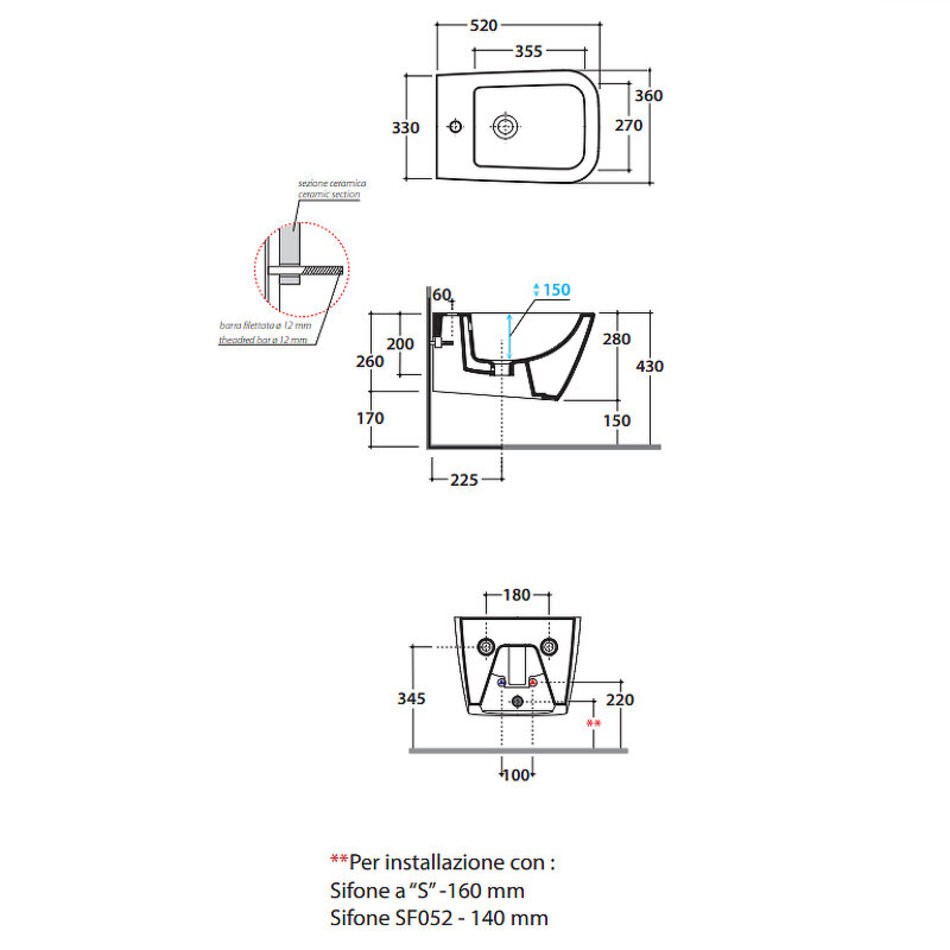 - Монтаж: подвесной.