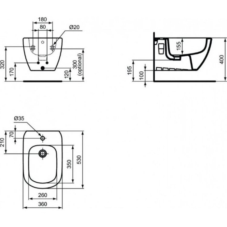 Биде подвесное Ideal Standard Tesi, T3552V3, цвет черный матовый