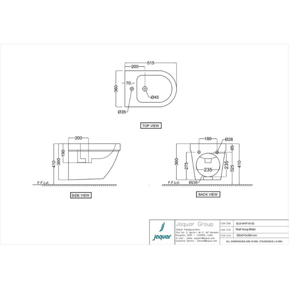 Биде подвесное Jaquar Solo SLS-WHT-6153, цвет белый