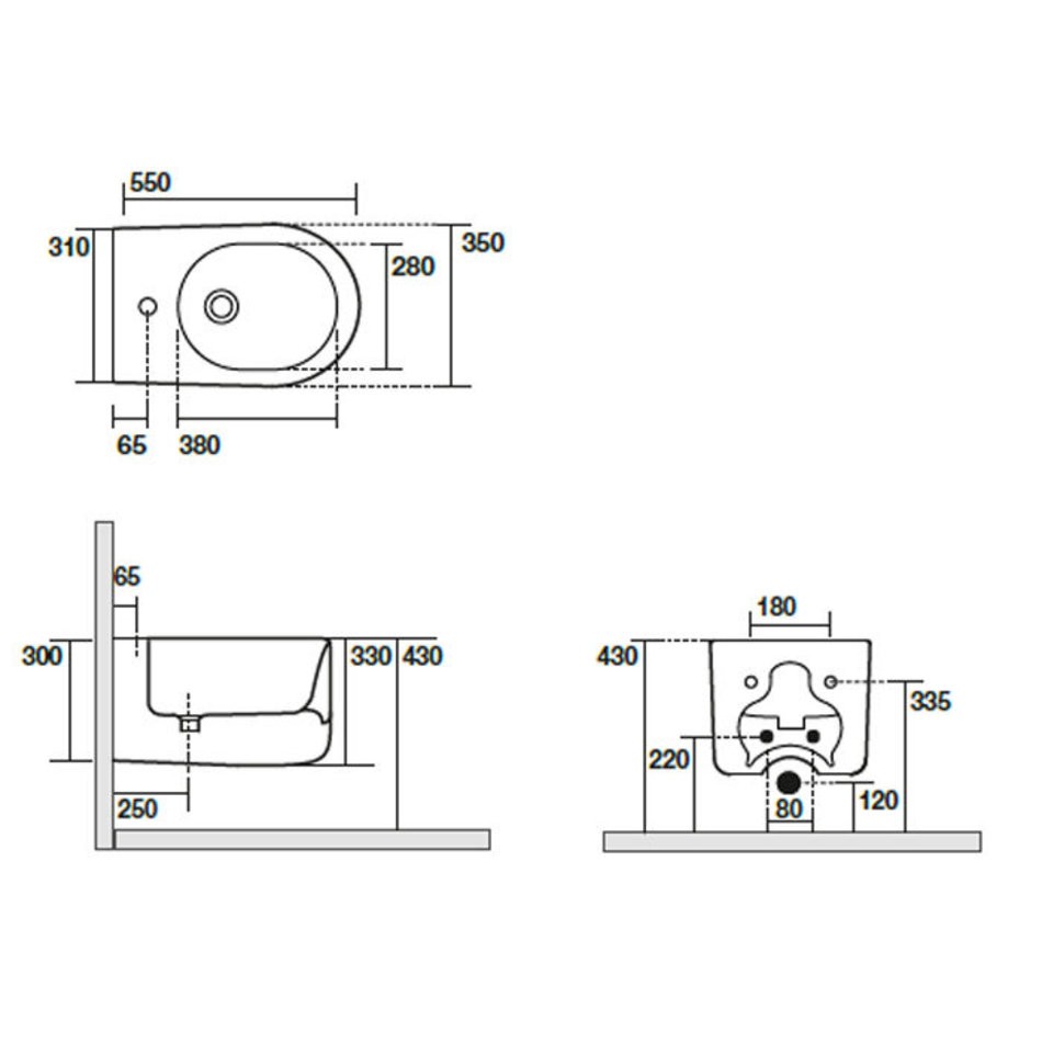 Биде подвесное Kerasan Nolita с креплениями WB9N, цвет ferro matt серый матовый, 532589*1
