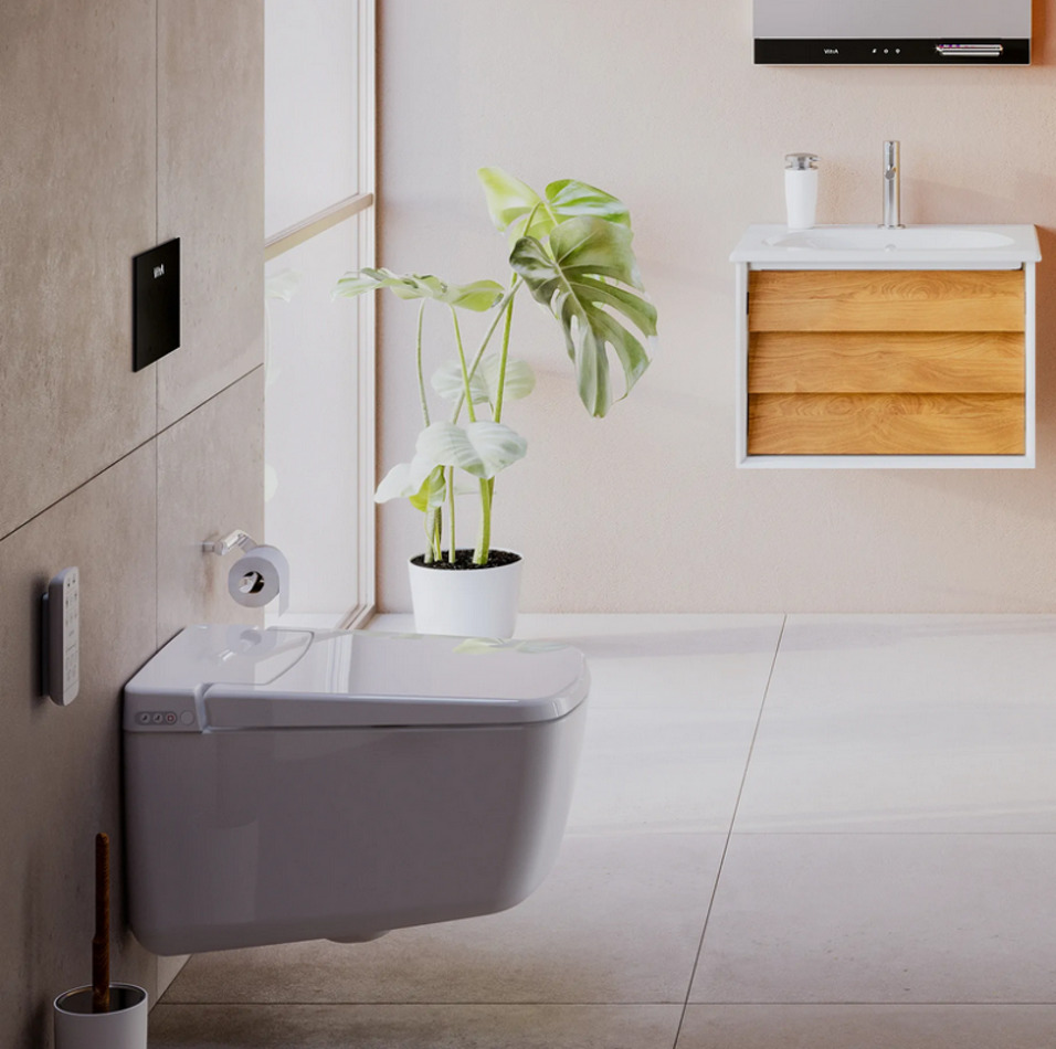 Умные унитазы V-Care от VitrA - превосходная гигиена и максимальный комфорт. V-care – это новое поколение унитазов для ванных комнат от VitrA; они объединяют функциональность унитаза и гигиенические возможности, характерные для биде, при этом предлагая впечатляющий дизайн и повышенный комфорт. Серия V-care разработана дизайн-студией NOA, она идеально подходит для всех стилей ванных комнат и выглядит как стильный подвесной унитаз. С этим новым поколением унитазов для ванных VitrA предлагает не только повышенный уровень гигиены с водным омывателем, но и эргономичную конструкцию/повышенный комфорт, соответствующий потребностям современного стиля жизни, включая различные опции обмывания, регулировку температуры воды и сиденья, опции сушки и механизм автоматического открытия/закрытия. V-care введет новый стандарт в вашей ванной комнате, с его уникальным дизайном, непревзойденным комфортом и повышенным уровнем гигиены.