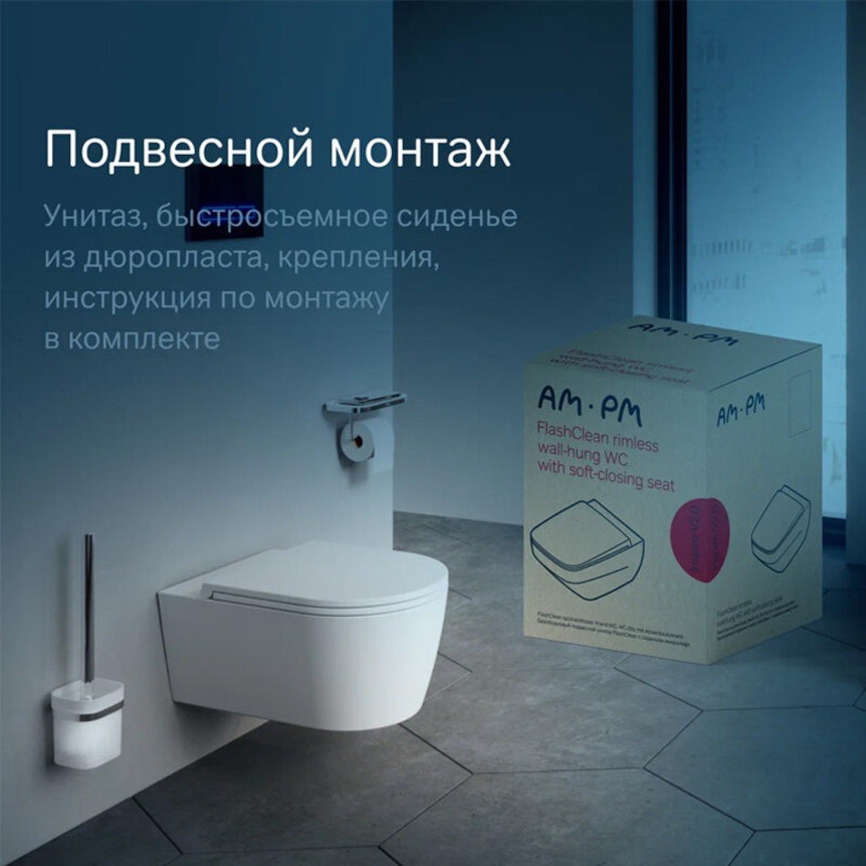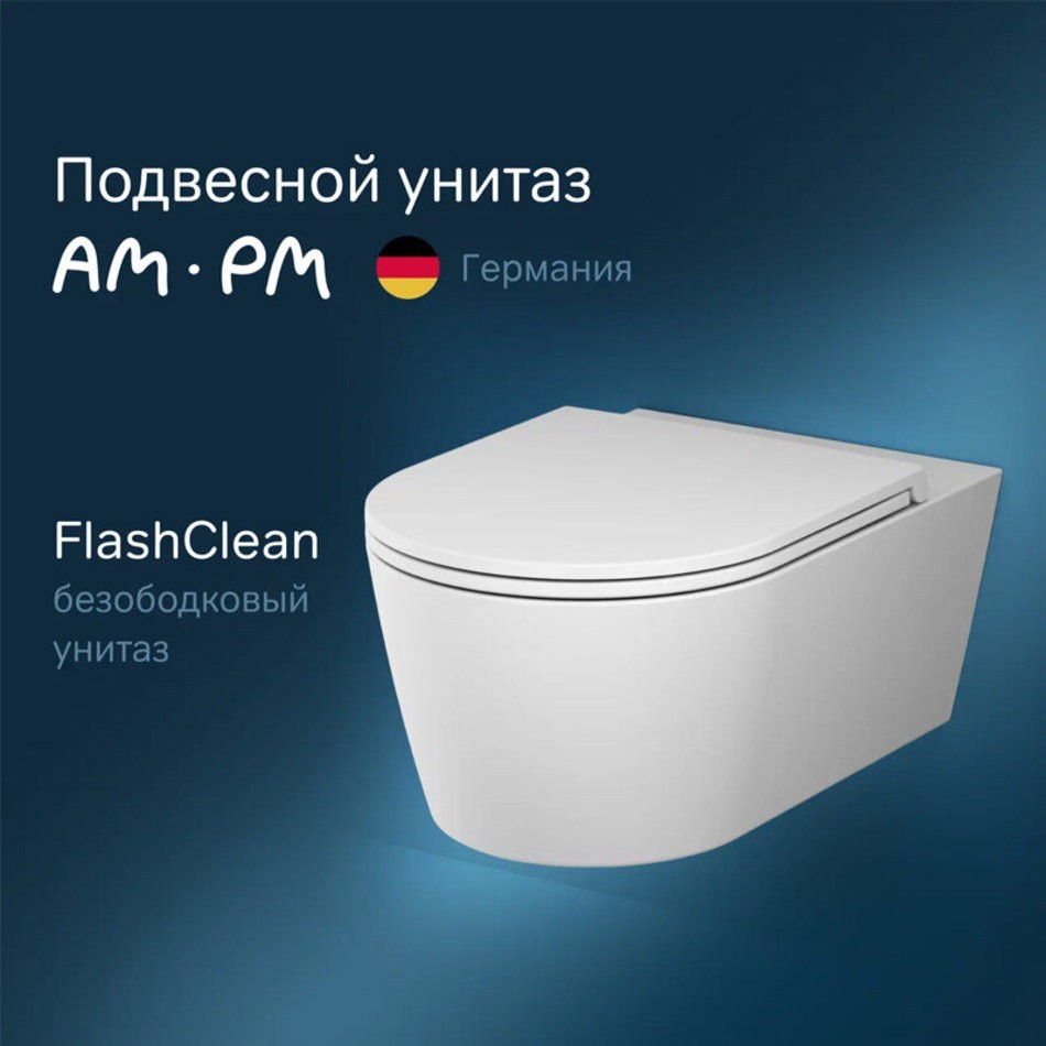 Подвесной безободковый унитаз Am.Pm Func C8F1701MWSC FlashClean, с сиденьем микролифт, белый матовый