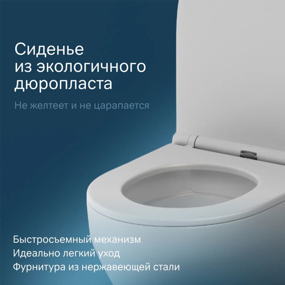 - Механизм плавного опускания, рассчитанный на 100 000 закрываний - комфорт в использовании, механизм быстрого снятия - легкость в уходе за сиденьем и керамикой.