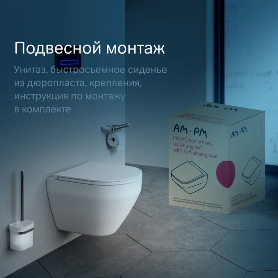 Подвесной безободковый унитаз Am.Pm Spirit V2.0 C701700MWSC FlashClean, с сиденьем микролифт, белый матовый