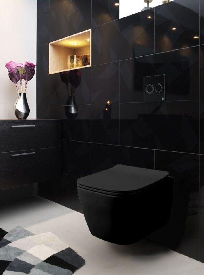 Подвесной безободковый унитаз Azario Boca AZ-2002-MB, крышка микролифт, черный матовый