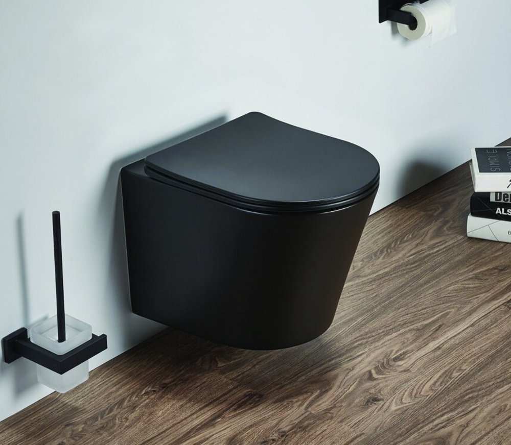 Подвесной безободковый унитаз Azario Teramo AZ-053E-R-MBSP, крышка микролифт, черный матовый