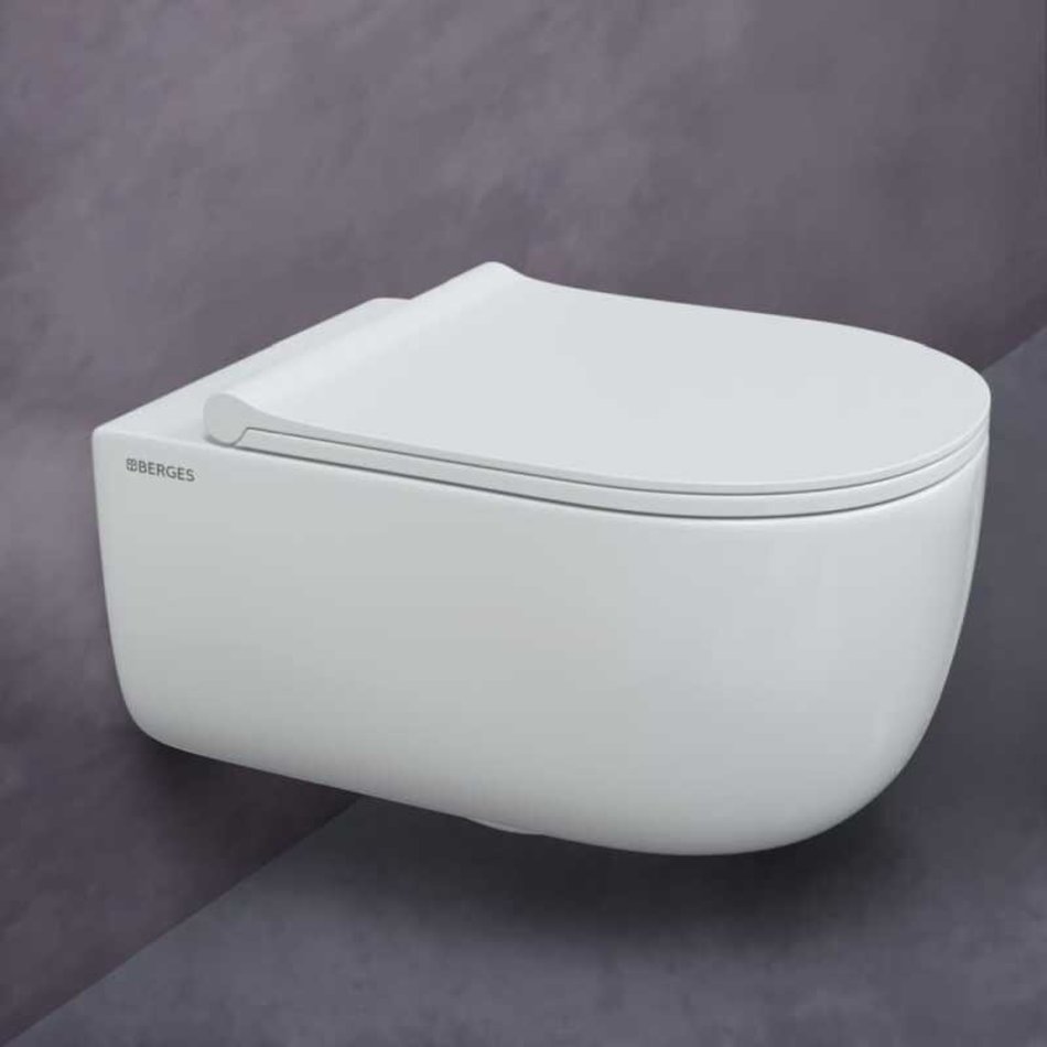 Подвесной безободковый унитаз Berges Wasserhaus Ego XL Rimless 082118, крышка микролифт, белый