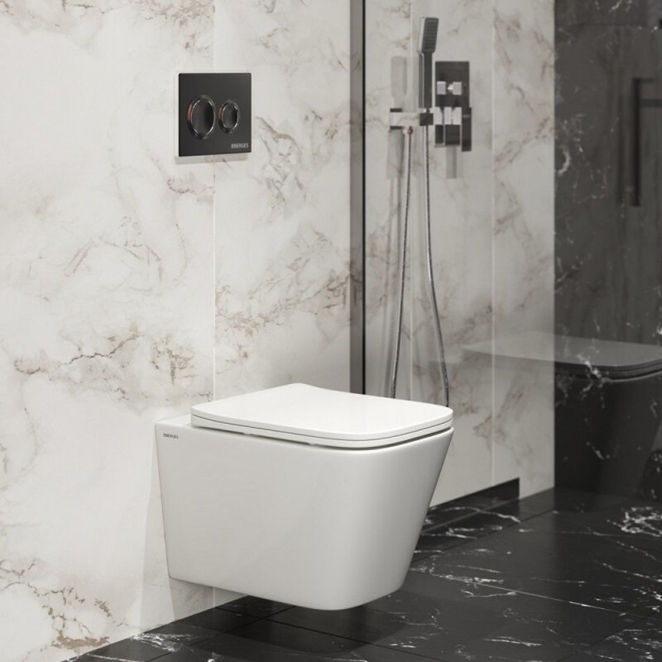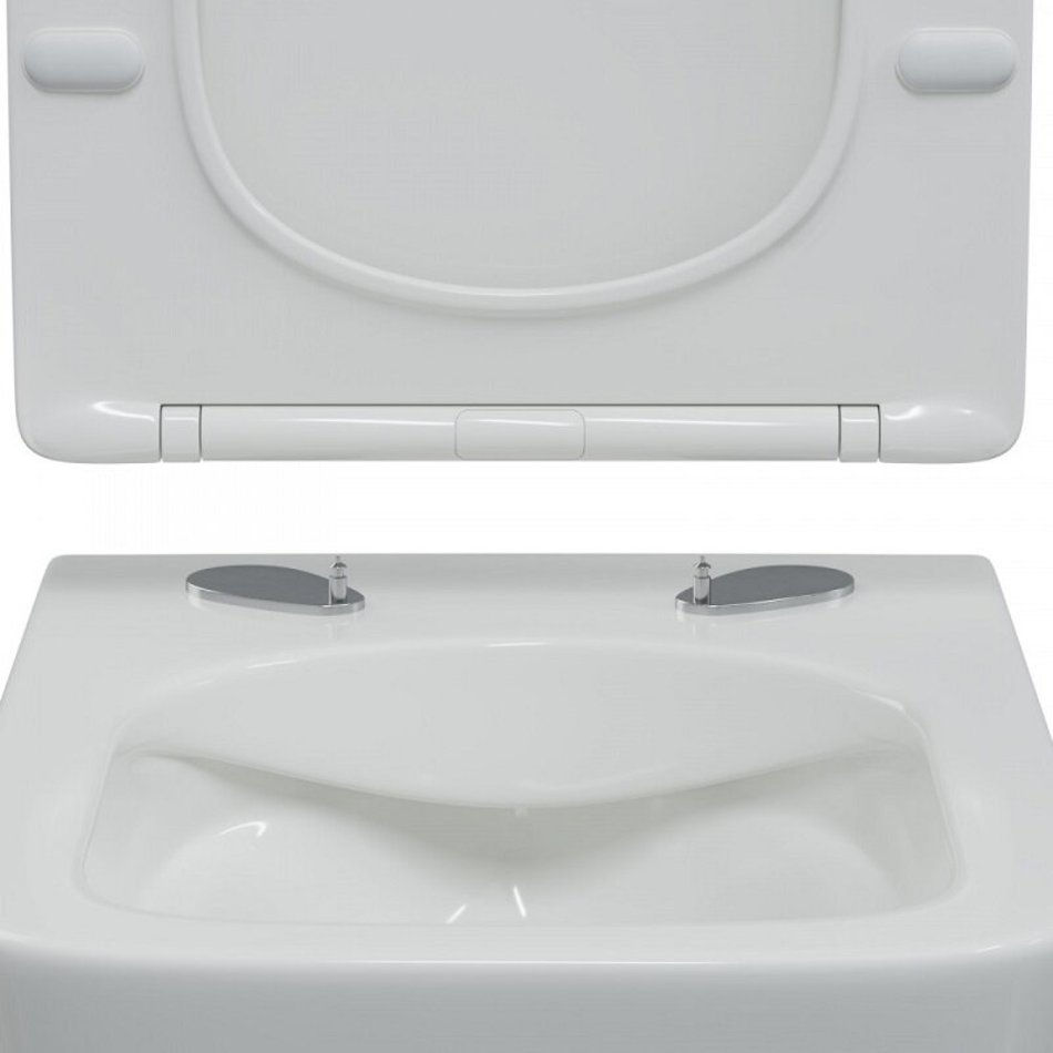 Безободковая система смыва, антибактериальное покрытие, экономия воды, скрытый крепеж