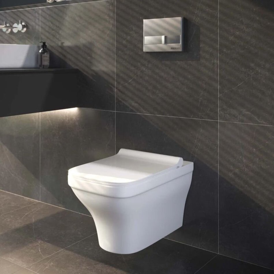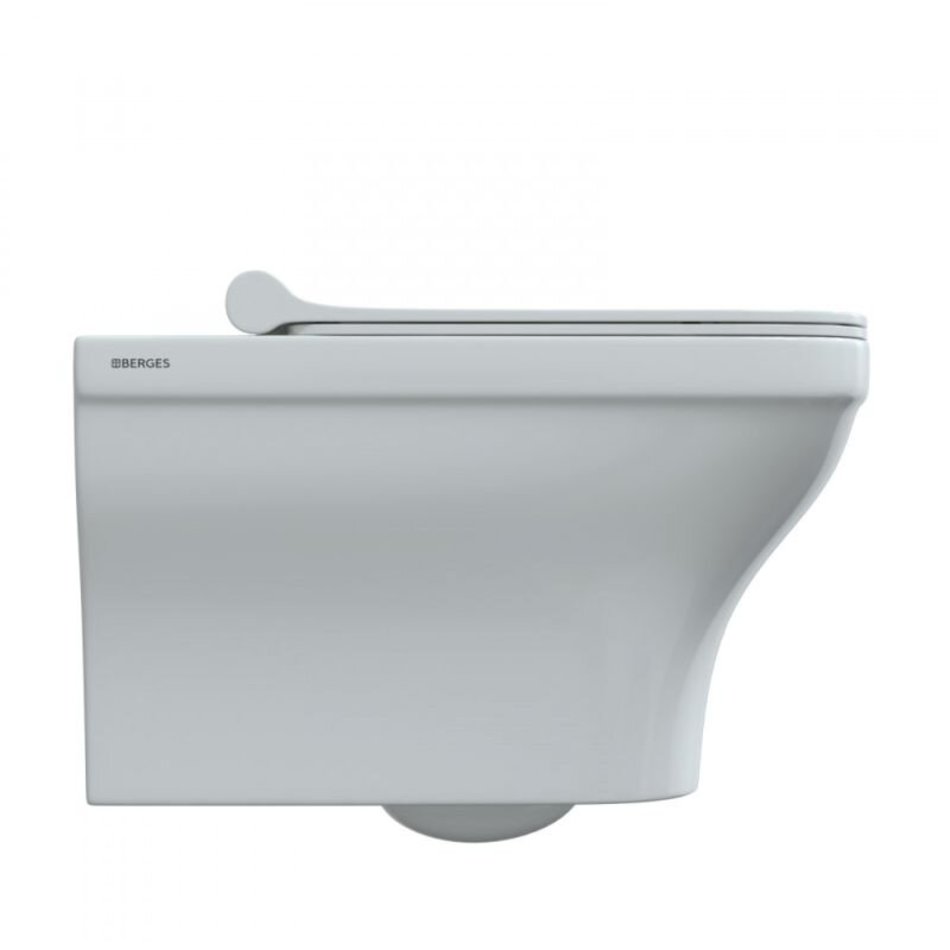 Подвесной безободковый унитаз Berges Strati, крышка Strati SO микролифт, 082132