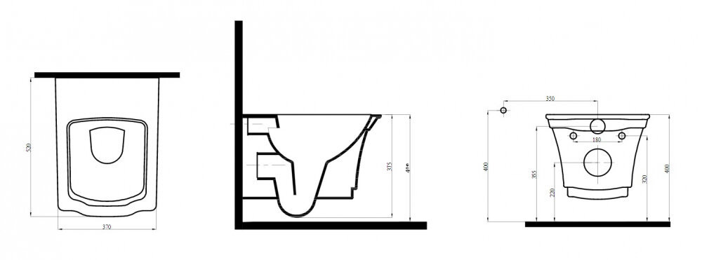 Подвесной безободковый унитаз Boheme Hermitage 951-G Gold с узором, белый, золото