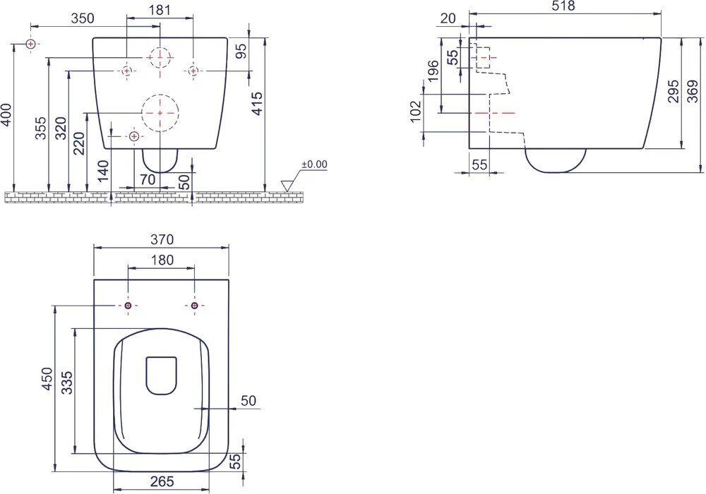 Подвесной безободковый унитаз Boheme Zen с функцией биде, белый матовый, 967-2-WM