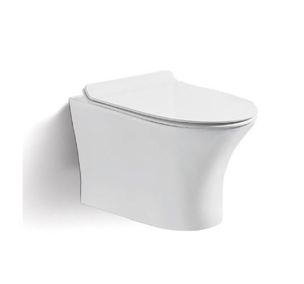 Подвесной безободковый унитаз CeramaLux 2617Е, крышка микролифт, тонкая, белый