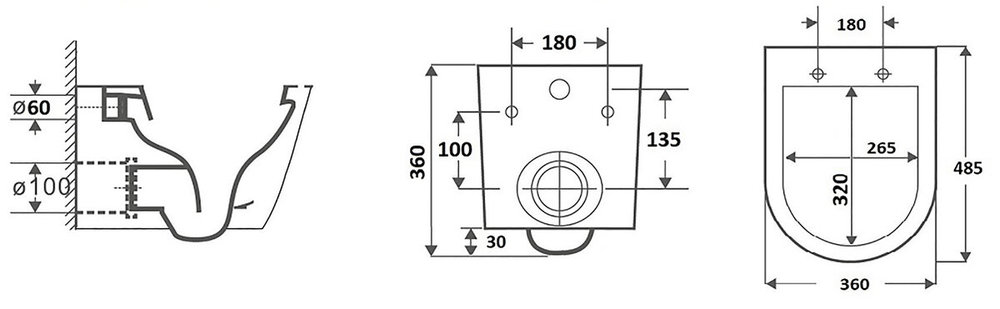 Подвесной безободковый унитаз Ceramalux B2330-2MDH, серый, крышка микролифт