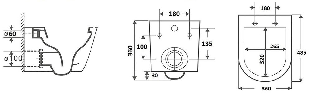 Подвесной безободковый унитаз Ceramalux B2330-3MH, светло-серый, крышка микролифт