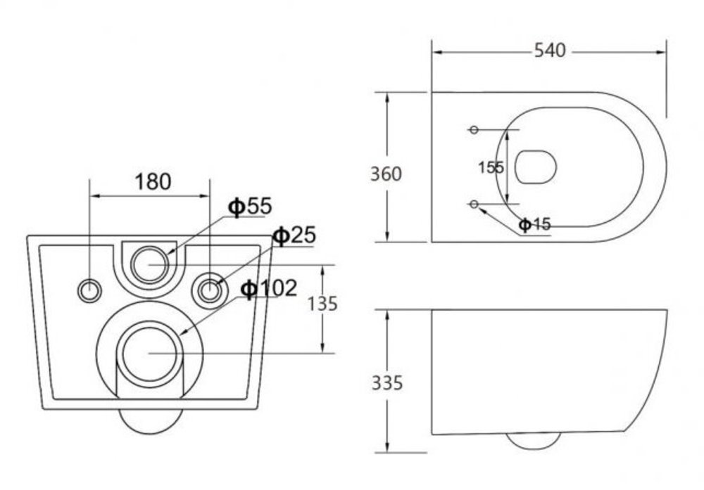 Подвесной безободковый унитаз Cezares Molveno CZR-2468-TH-R 54 см, белый