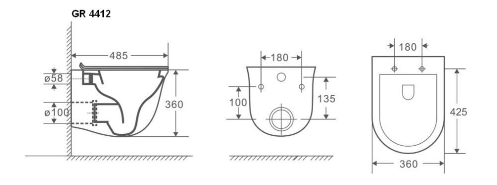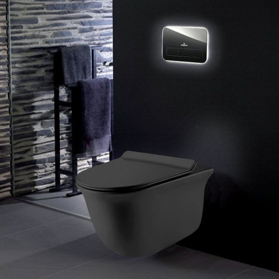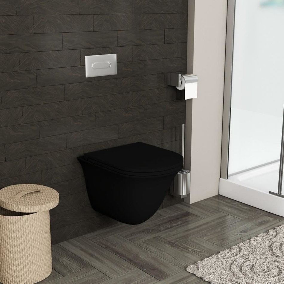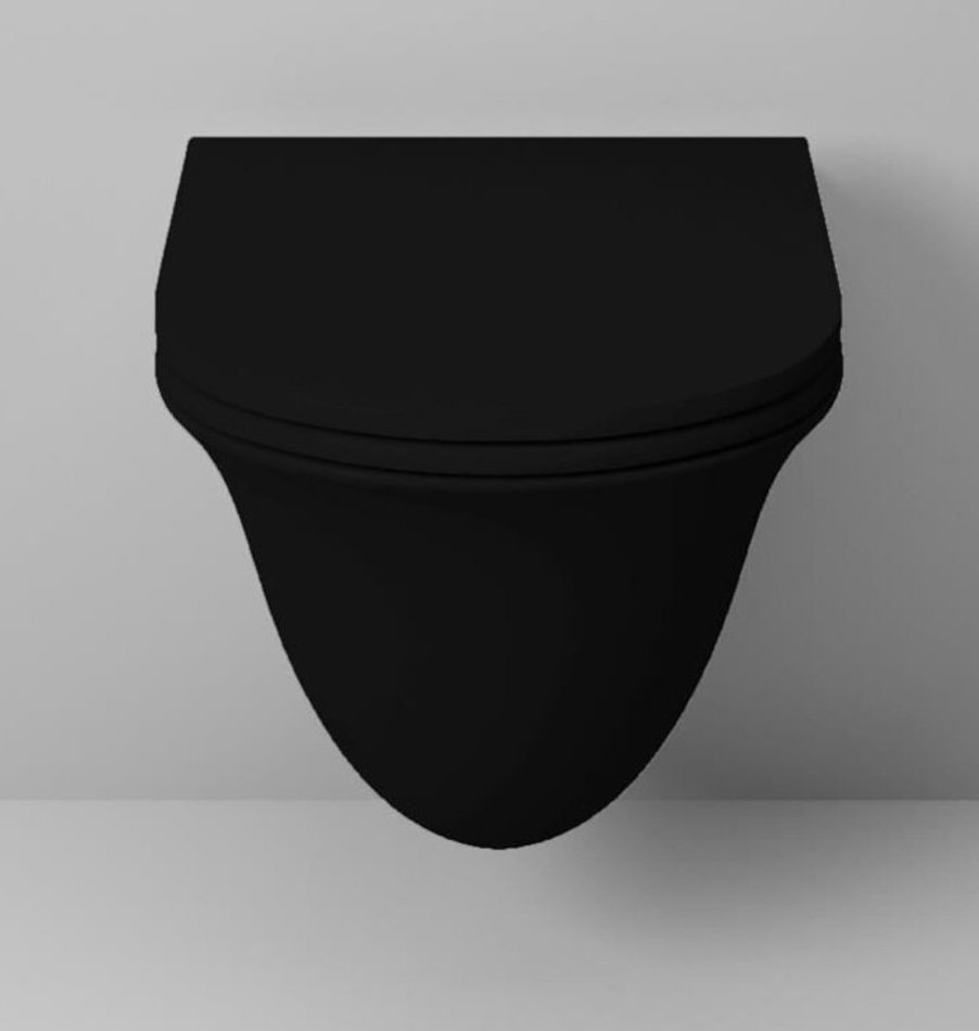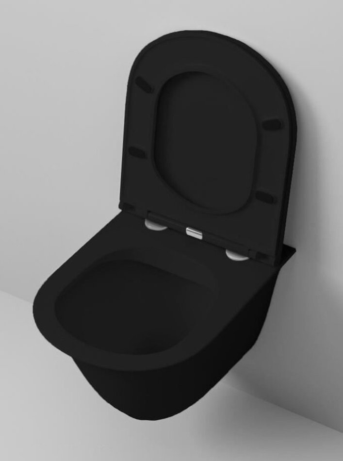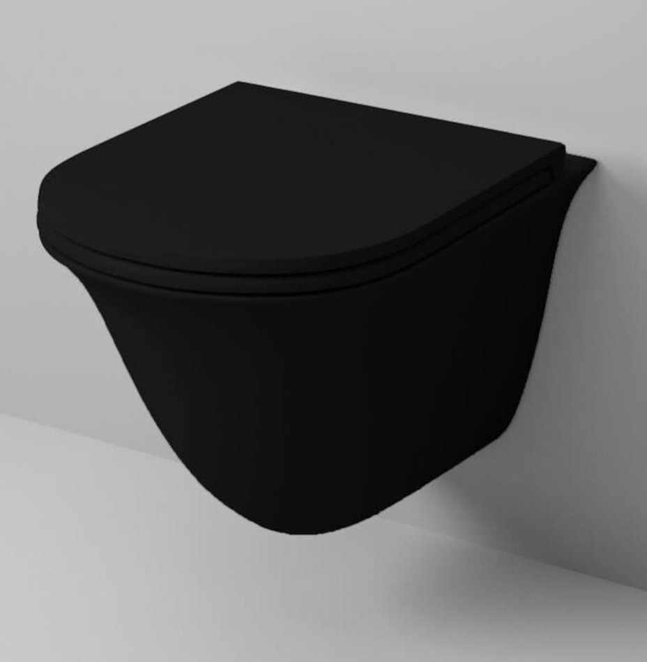Подвесной безободковый унитаз Grossman, черный матовый, крышка тонкая микролифт, GR-4412BMS