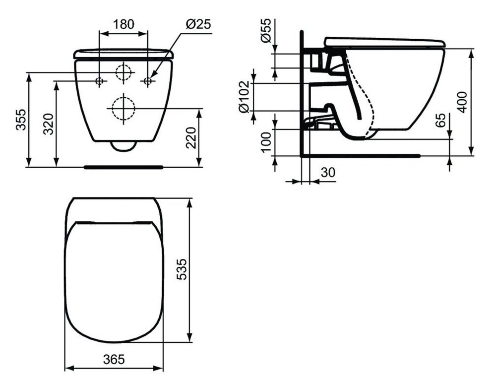 Подвесной безободковый унитаз Ideal Standard Tesi T355101 Rimless белый, сиденье микролифт