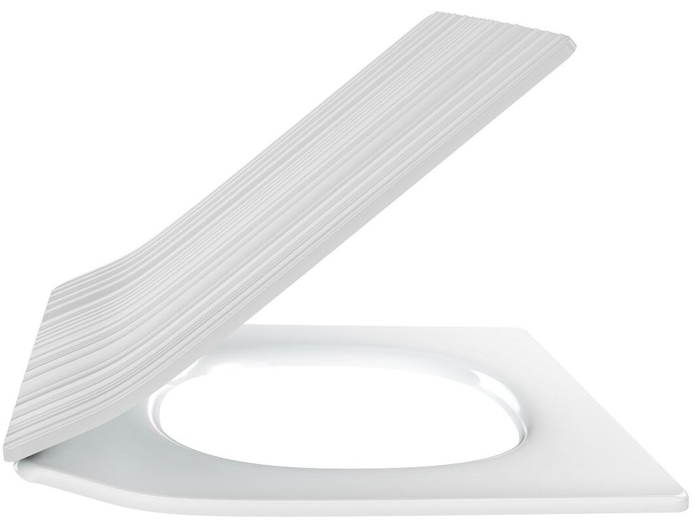 - Матовая текстурированная крышка и глянцевое белое сиденье с плавным опусканием и функцией быстрого снятия
