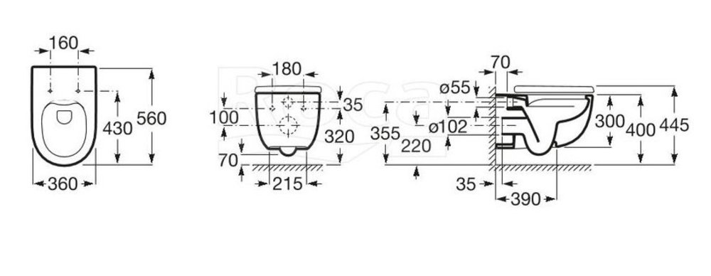 Подвесной безободковый унитаз Roca Meridian A34H240000 Rimless, крышка микролифт, белый