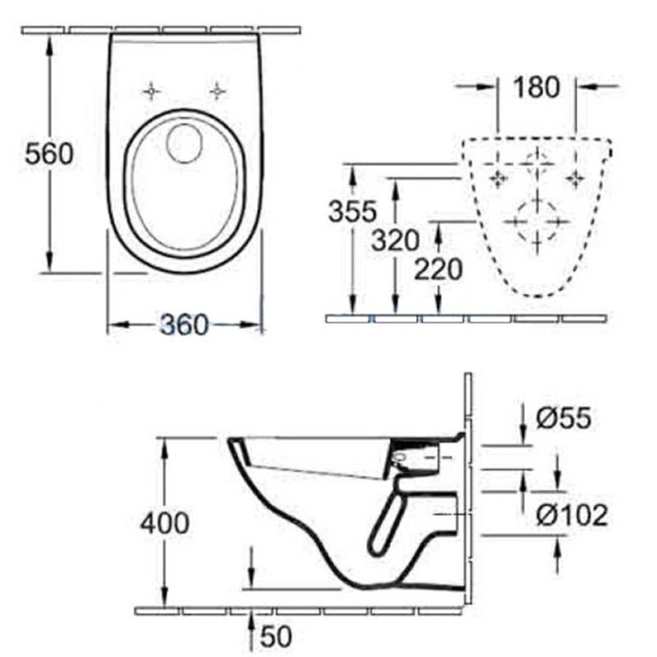 Подвесной безободковый унитаз Villeroy&Boch O.novo 5660R001, альпийский белый