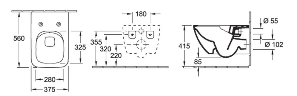 Подвесной безободковый унитаз Villeroy&Boch Venticello 4611 R0R1