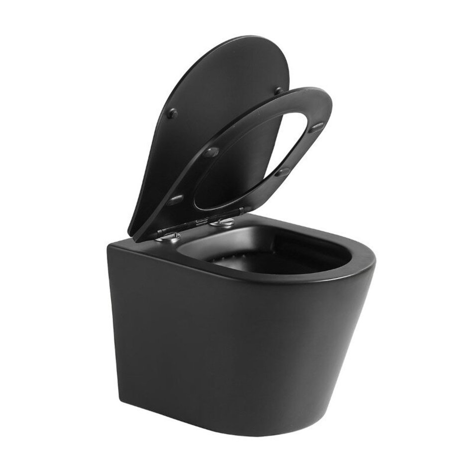 Подвесной безободковый унитаз Vincea Piatti VT1-11SMB, ультратонкое soft-close сиденье, цвет черный матовый