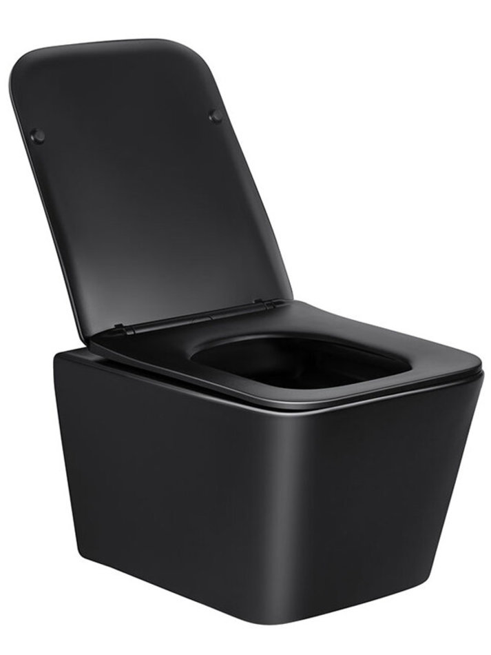Подвесной безободковый унитаз Vincea Q-Line, крышка микролифт, тонкая, черный матовый, VT1-12MB (отсутствует упаковка)