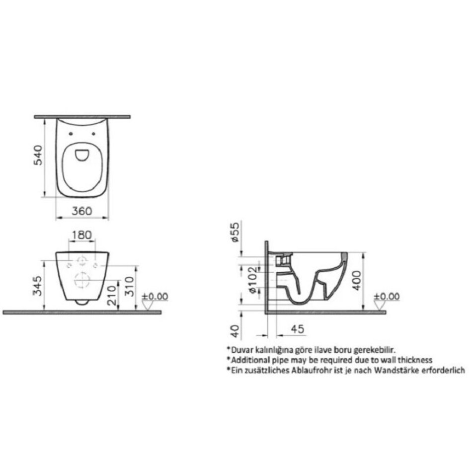 - Форма воронки унитаза предотвращает образование брызг