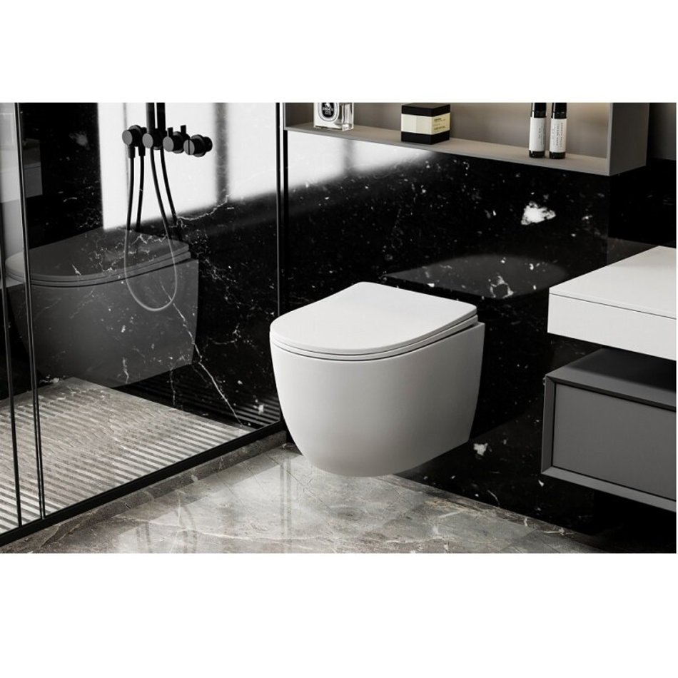 Подвесной унитаз Abber Bequem AC1100MW безободковый, крышка-сиденье микролифт, белый матовый