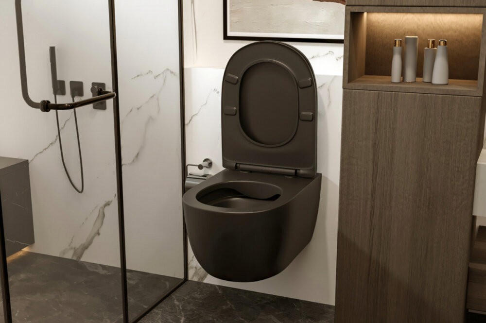Подвесной унитаз Abber Bequem AC1104MB, безободковый, сиденье микролифт, черный матовый
