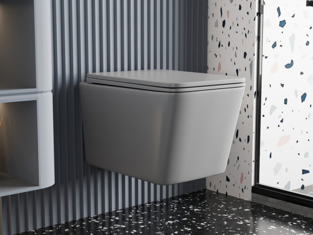 Подвесной унитаз Abber Rechteck, безободковый, сиденье микролифт, серый матовый, AC1201MG