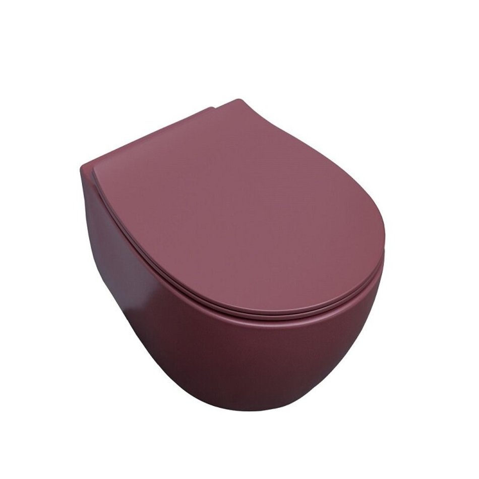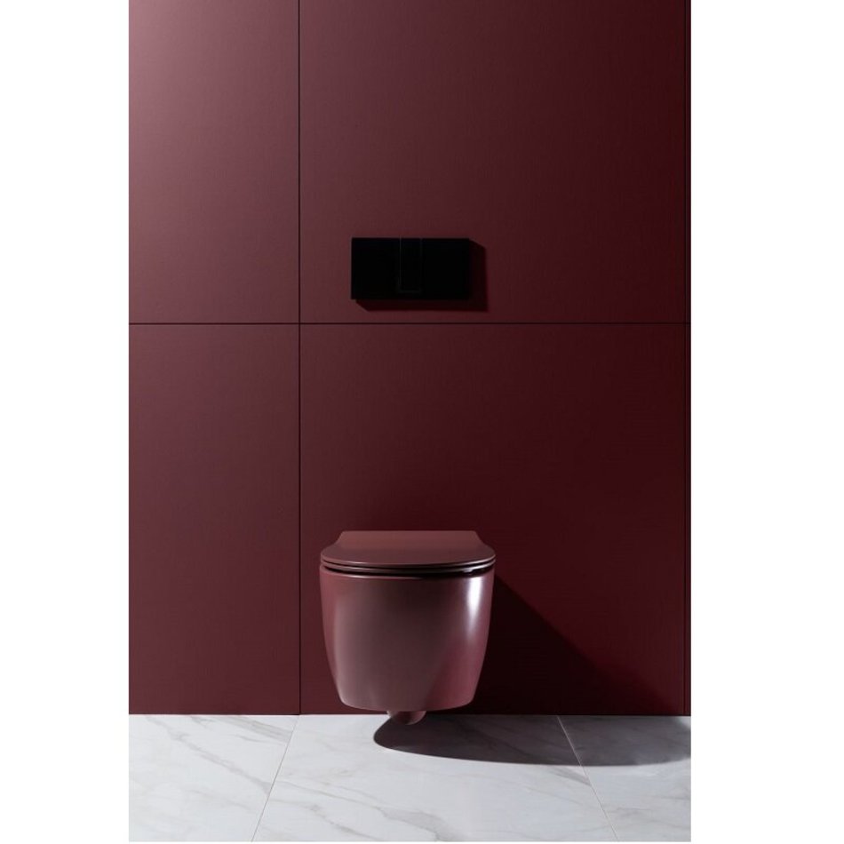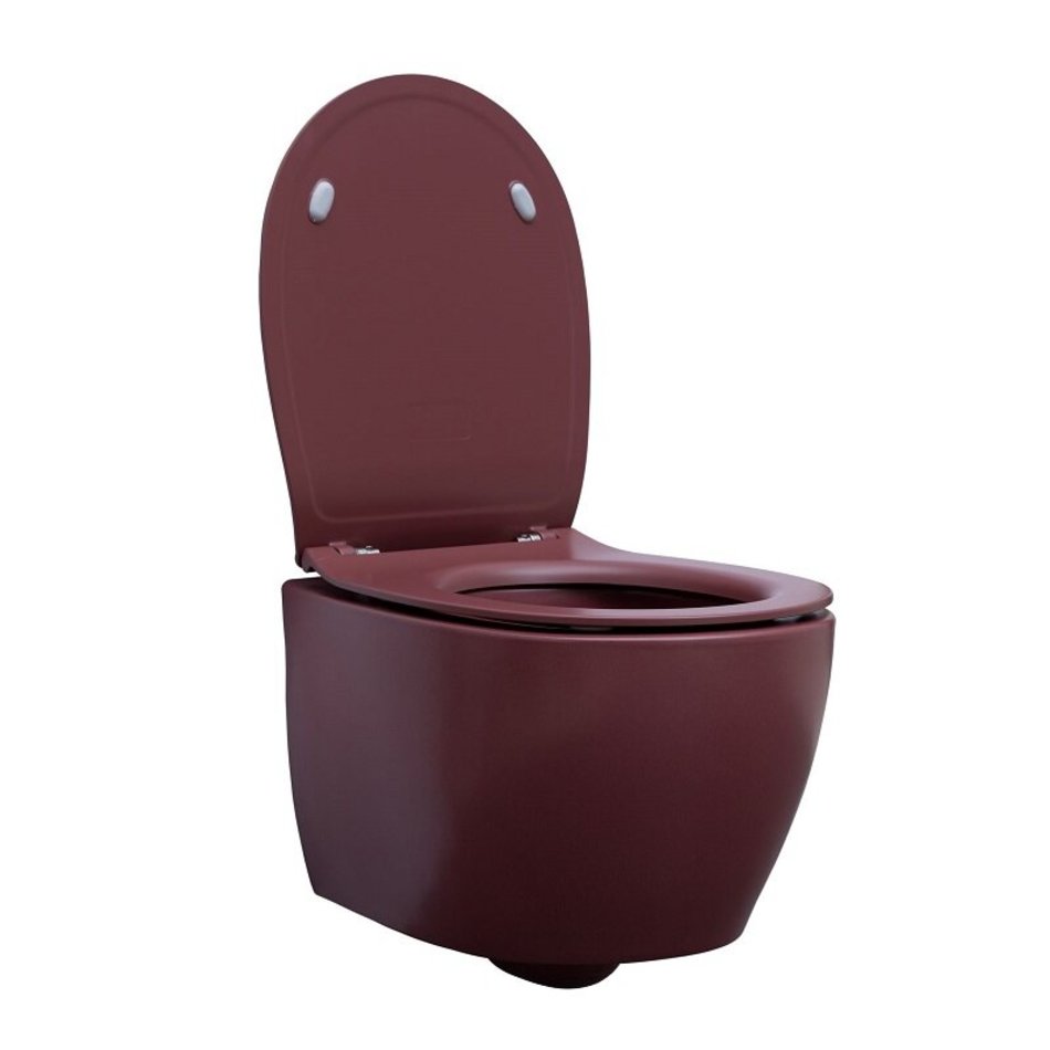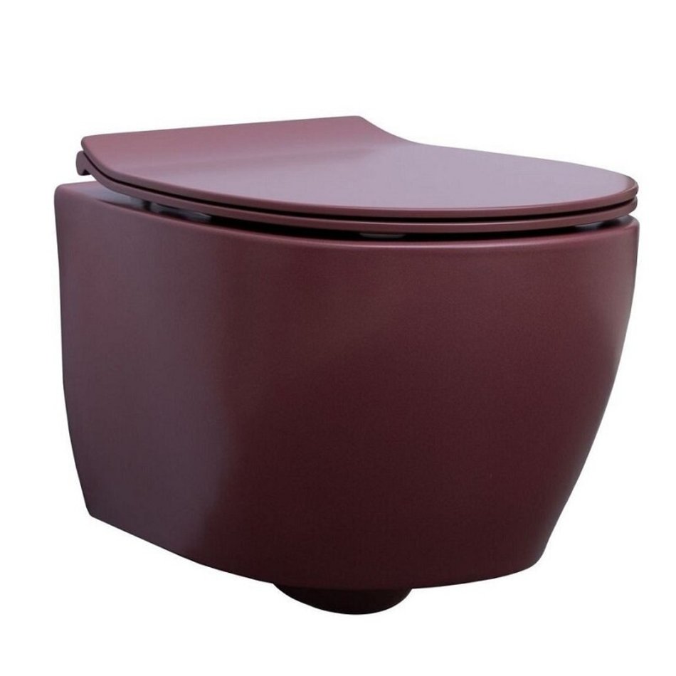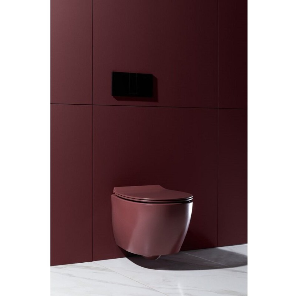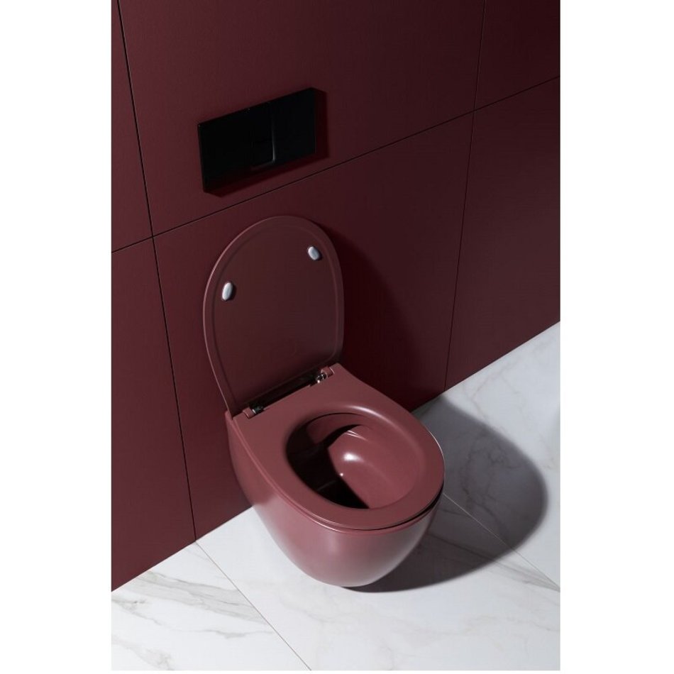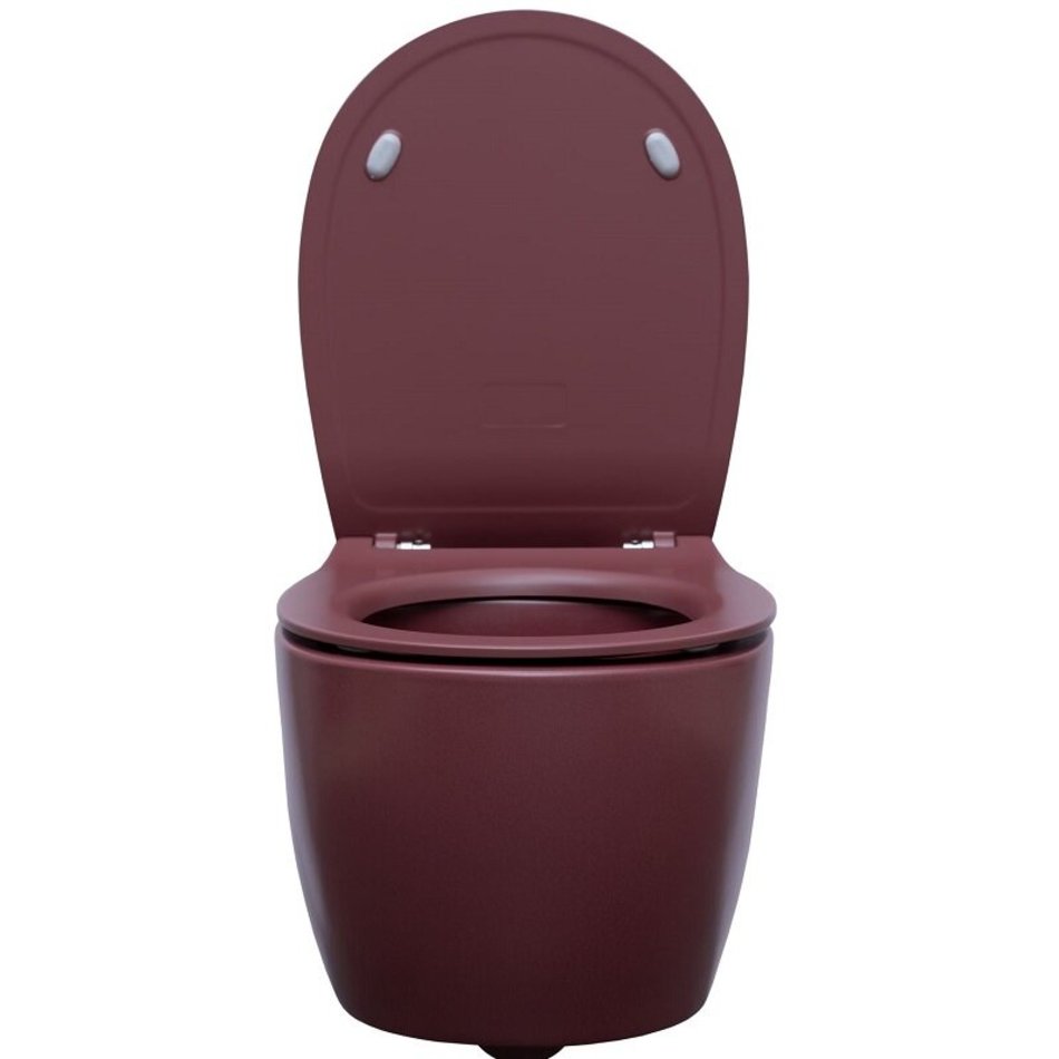 Унитаз подвесной, безободковый (бордовый матовый). Размер 363*510*400 мм. Дополнительно необходимо приобрести сиденье с крышкой с микролифтом арт. 4.11005.BD - в комплект поставки не входит.