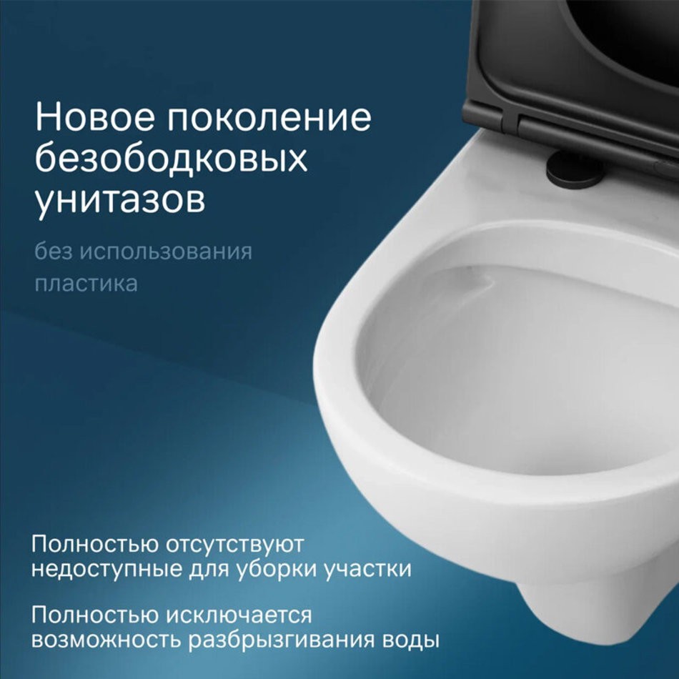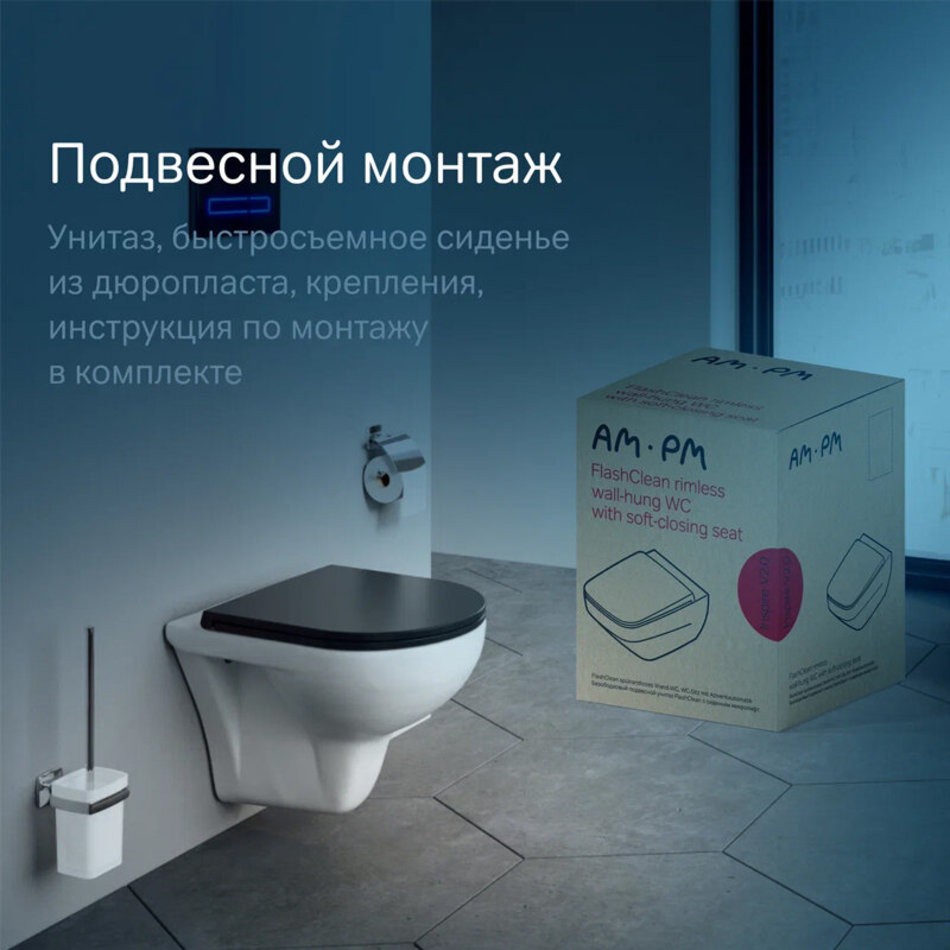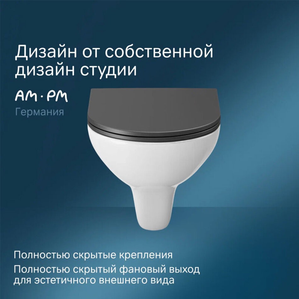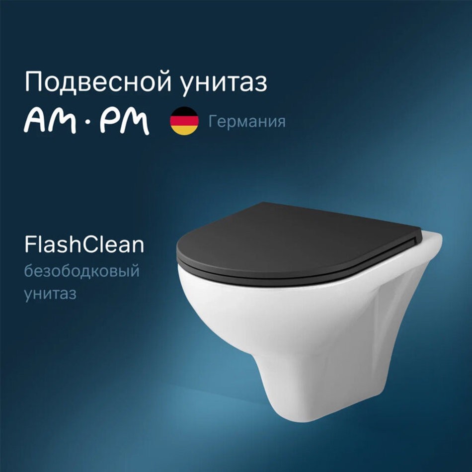 Подвесной унитаз Am.Pm Gem FlashClean безободковый, белый, с черным матовым сиденьем микролифт, C901700SCmb