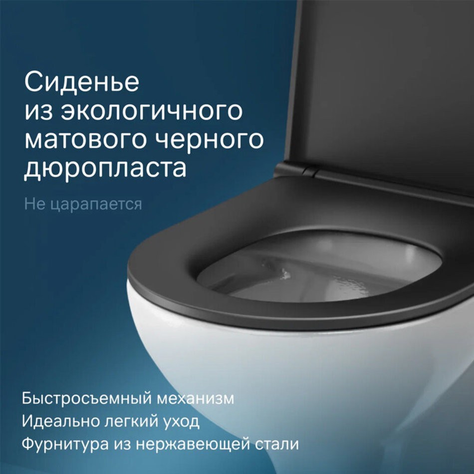 - Комплектуется быстросъемным сиденьем из дюропласта черного матового цвета с механизмом плавного закрывания