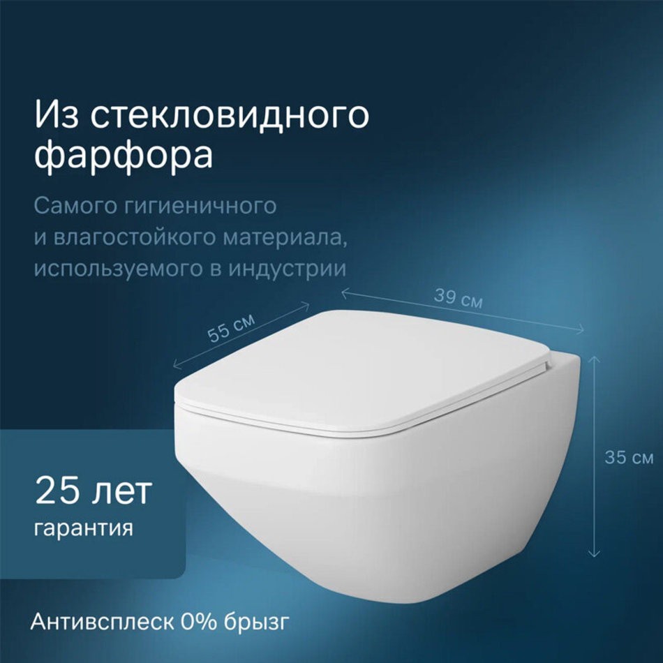 - Безупречная поверхность: изготовлен из стекловидного фарфора, самого гигиеничного и влагостойкого материала, с использованием форм последнего поколения;