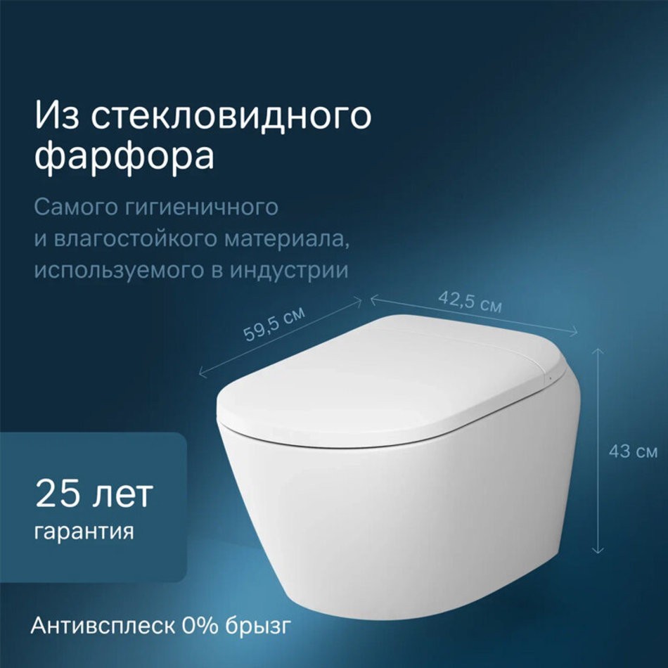 Подвесной унитаз Am.Pm Sensation с интегрированным электронным биде TouchReel, безободковый, белый, CCC301700SC