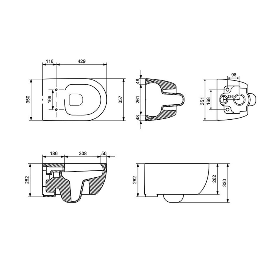 Подвесной унитаз Ambassador Abner, безободковый, с сиденьем микролифт, цвет белый матовый, 103T20101R-102T20101S