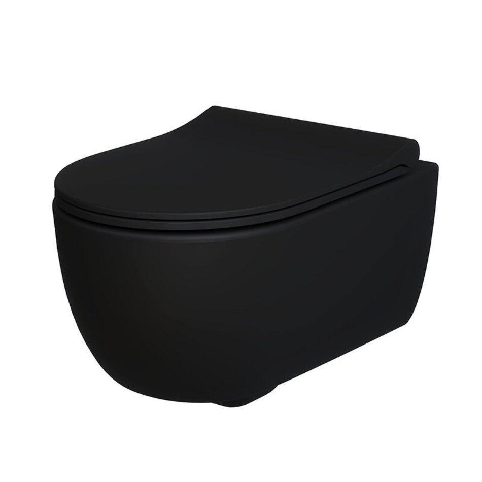 Подвесной унитаз Ambassador Abner, безободковый, с сиденьем микролифт, цвет черный матовый, 103T20201R-102T20201S