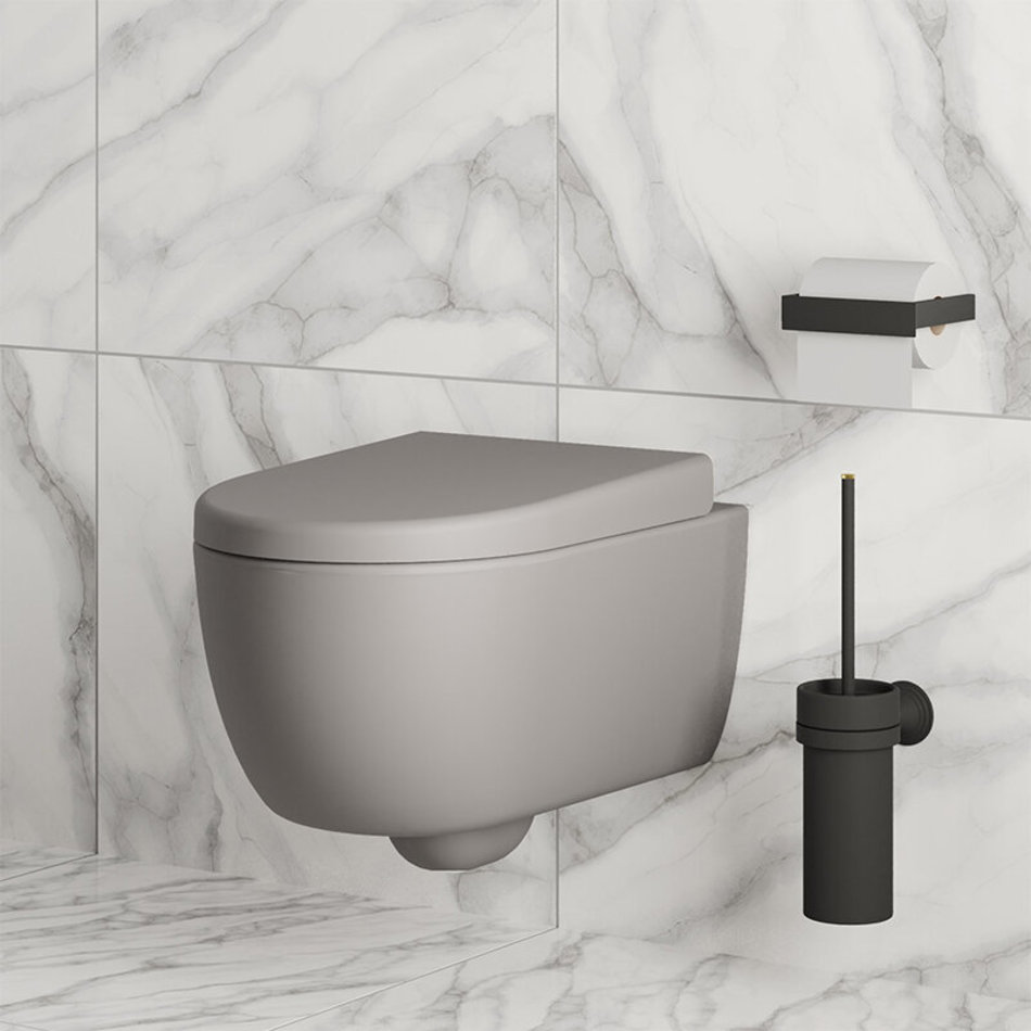 Подвесной унитаз Ambassador Abner, безободковый, с сиденьем микролифт, цвет серый матовый, 103T20301R-102T20301