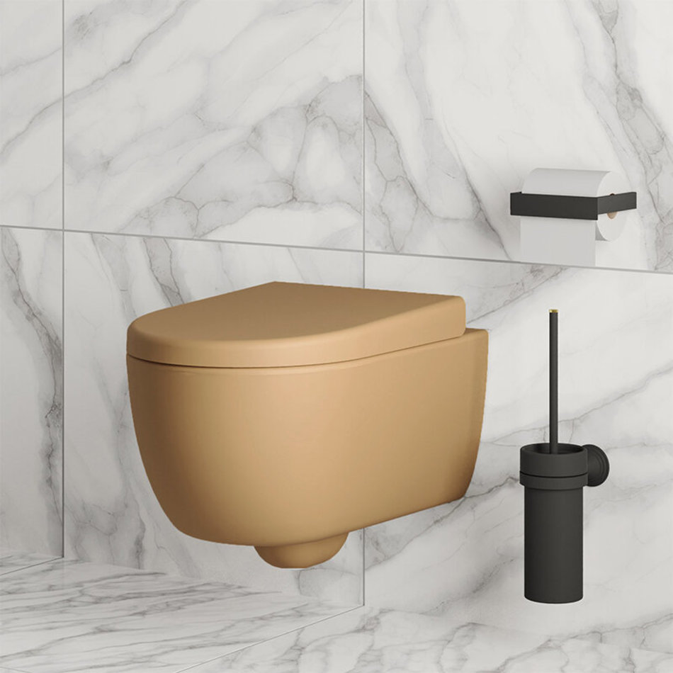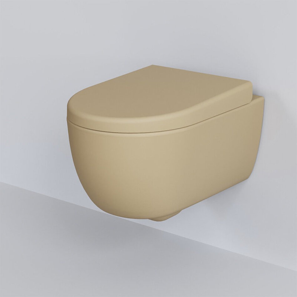 Подвесной унитаз Ambassador Abner, безободковый, с сиденьем микролифт, цвет темно-бежевый матовый, 103T20501R-102T20501
