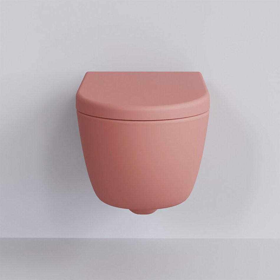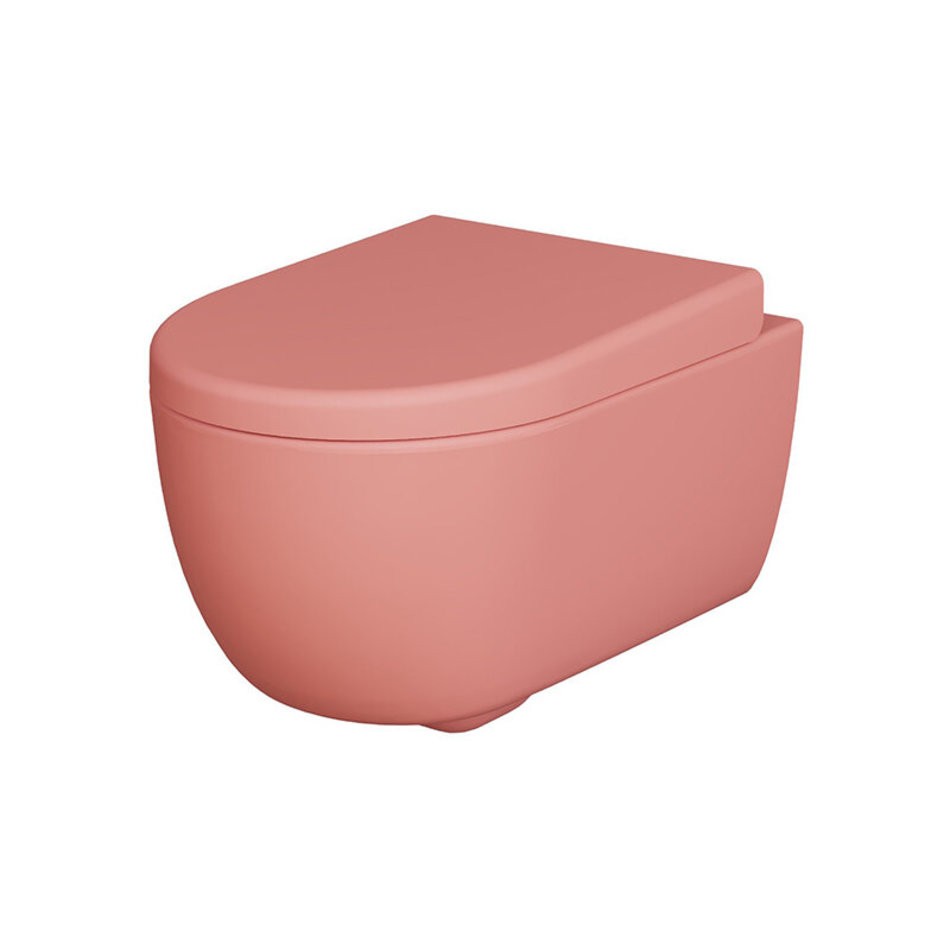 Подвесной унитаз Ambassador Abner 103T20901R-102T20901, безободковый, с сиденьем микролифт, цвет розовый матовый