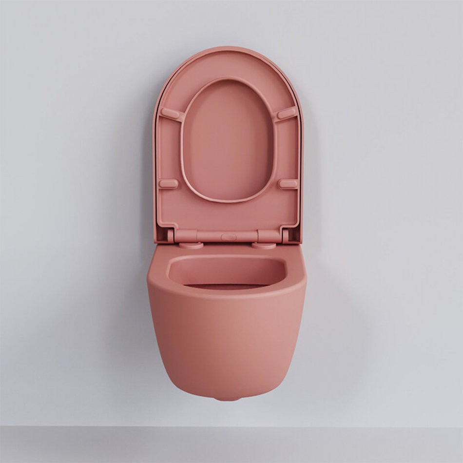 Подвесной унитаз Ambassador Abner, безободковый, с сиденьем микролифт, цвет розовый матовый, 103T20901R-102T20901