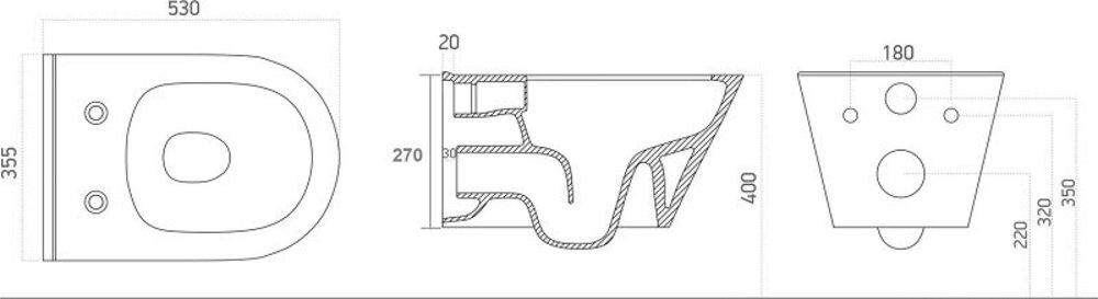 - Безободковая конструкция чаши RIMLESS с инновационным сливом воды.