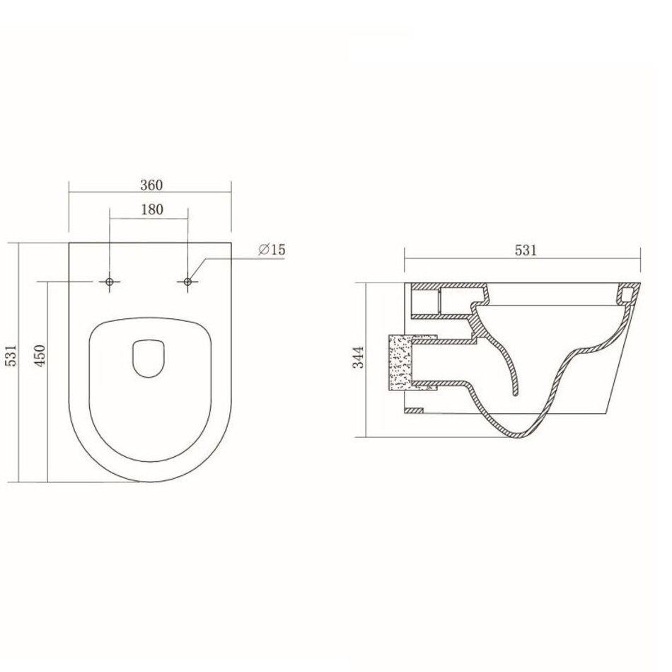 - Крышка-сиденье: дюропласт, быстросъемное, с функцией плавного закрывания, петли металл хром