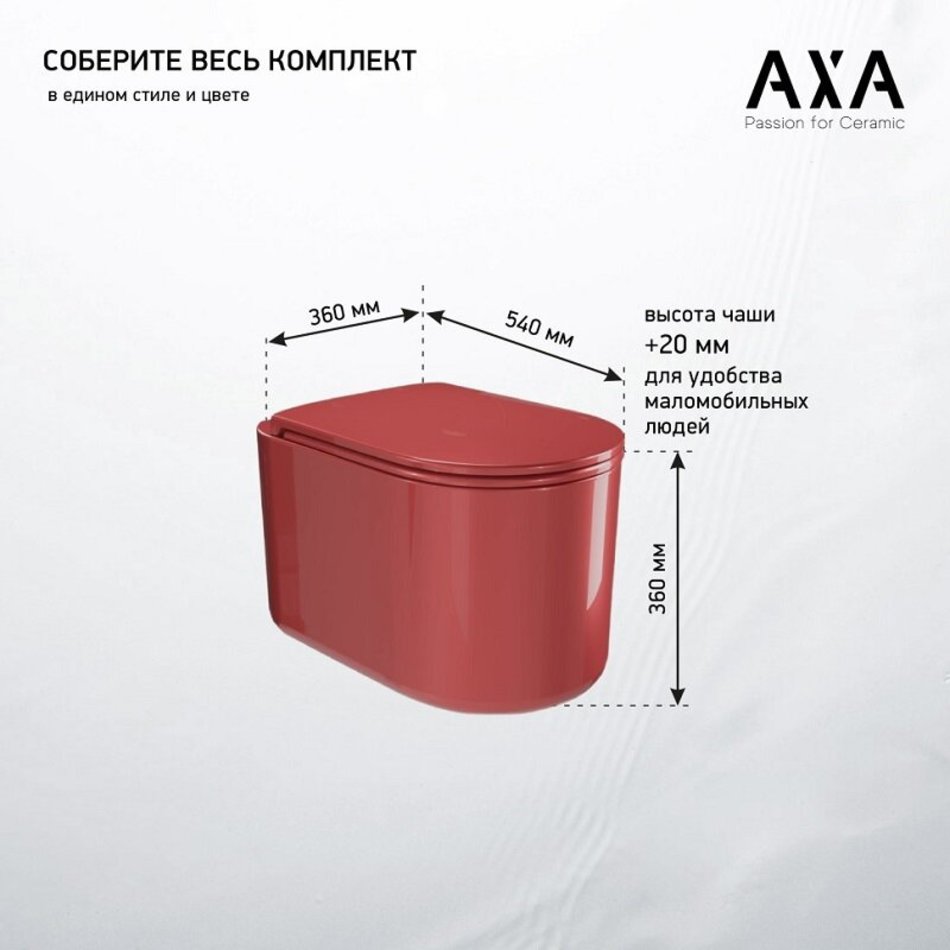 Подвесной унитаз Axa Delano WCWH9001002, безободковый, крышка-сиденье с микролифтом, кирпичный глянцевый
